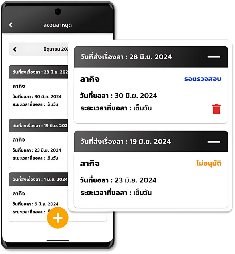 ส่งใบลาล่วงหน้าพร้อมแจ้งเหตุผลหรือหลักฐานประกอบการลาเพื่อให้ฝ่ายบุคคลตรวจสอบและอนุมัติส่วนกลางสามารถจำกัดจำนวนการส่งใบลาต่อวันตามจำนวนตัวสำรองได้